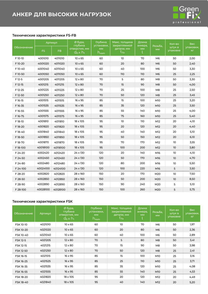Анкер для высоких нагрузок FS 12/ 5 M8 L=80